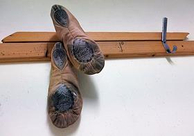 Работа Екатеринбургского государственного академического театра оперы и балета "Урал Опера Балет". Жанровая фотография. Пуанты на вешалке.