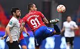 Российская Премьер-Лига (РПЛ). МИР - Чемпионат России по футболу 2022/2023. 27-й тур. Матч между командами ЦСКА (Москва) - "Торпедо" (Москва) на стадионе "ВЭБ Арена". Игрок команды ЦСКА Федор Чалов во время матча.