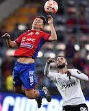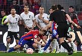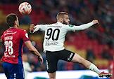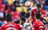 Российская Премьер-Лига (РПЛ). МИР - Чемпионат России по футболу 2022/2023. 27-й тур. Матч между командами ЦСКА (Москва) - "Торпедо" (Москва) на стадионе "ВЭБ Арена". Игроки команды ЦСКА Федор Чалов (слева) и Хесус Медина (справа) во время матча.