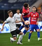Российская Премьер-Лига (РПЛ). МИР - Чемпионат России по футболу 2022/2023. 27-й тур. Матч между командами ЦСКА (Москва) - "Торпедо" (Москва) на стадионе "ВЭБ Арена". Игрок команды ЦСКА Антон Заболотный (в центре) во время матча.