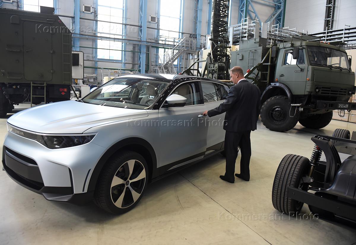 Press tour to the JSC "North-Western Regional Center of the Concern VKO "Almaz-Antey"- Obukhov Plant" (JSC "Obukhov Plant"). Crossover (SUV) E-Neva at the exhibition site of the enterprise.
