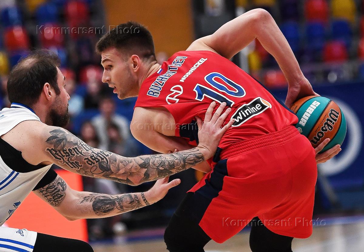 VTB United Basketball League. Match for third place. Match between the teams of CSKA (Moscow) - "Zenit" (St. Petersburg) at the stadium "Megasport". CSKA team player Samson Ruzhentsev (left) during the match.