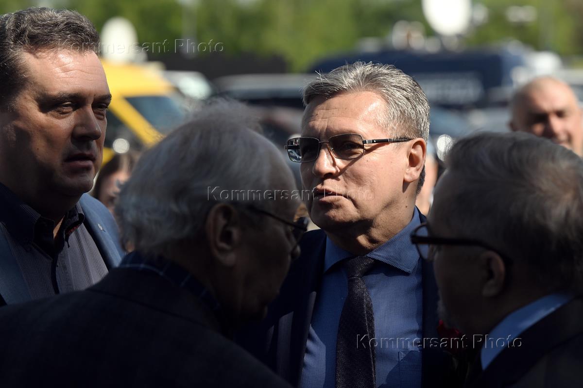 Farewell ceremony for President of the National Association of Broadcasters Eduard Sagalaev at the Troyekurovsky cemetery. Pavel Gusev (center), editor-in-chief of the Moskovsky Komsomolets newspaper, head of the Moscow Union of Journalists, after the ceremony.