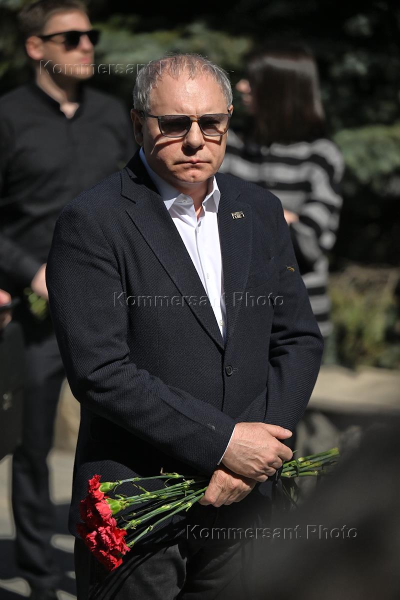 Farewell ceremony for President of the National Association of Broadcasters Eduard Sagalaev at the Troyekurovsky cemetery. Chairman of the Russian State Duma Committee on Information Policy, Information Technologies and Communications Alexander Khinshtein after the ceremony.