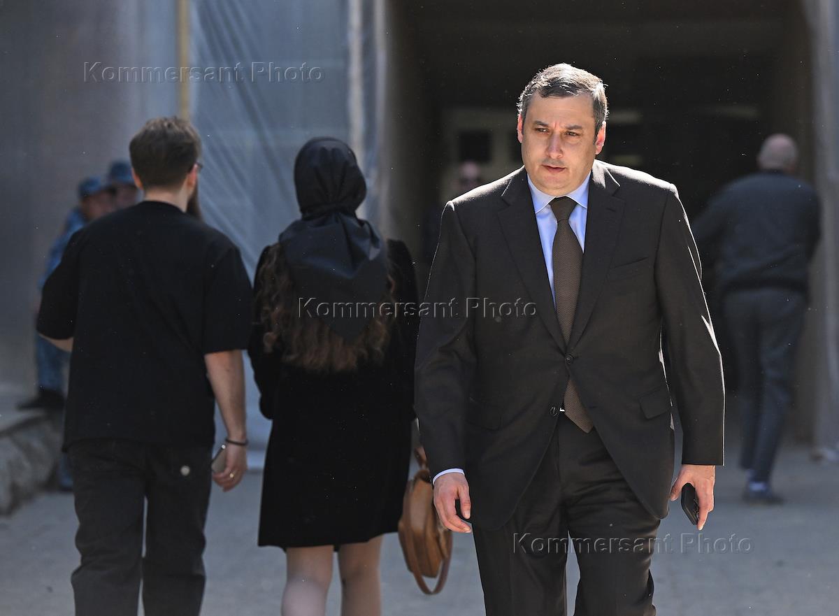 Farewell ceremony for President of the National Association of Broadcasters Eduard Sagalaev at the Troyekurovsky cemetery. Chairman of the Russian State Duma Committee on Information Policy, Information Technologies and Communications Alexander Khinshtein after the ceremony.