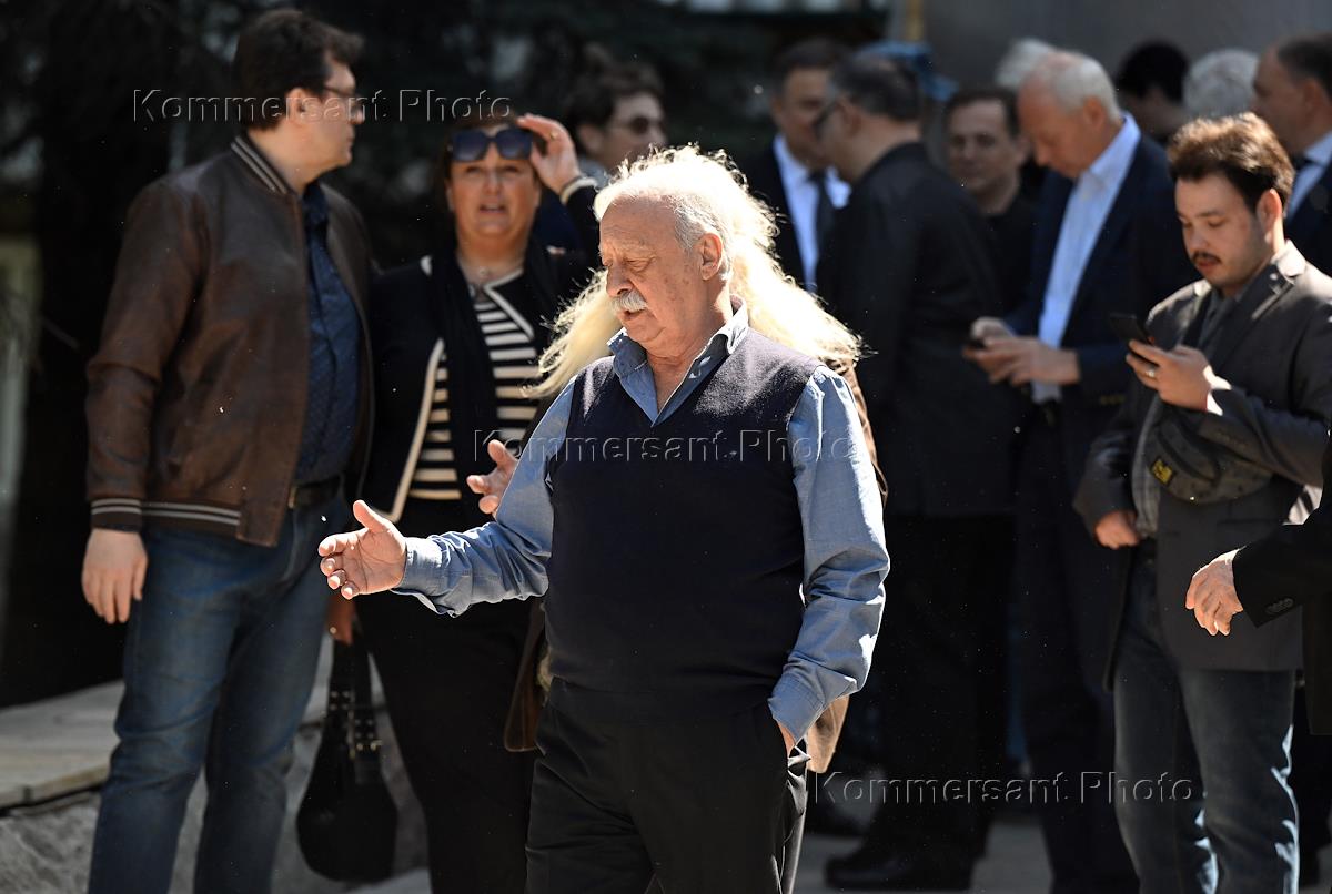 Церемония прощания с президентом Национальной Ассоциации телерадиовещателей Эдуардом Сагалаевым на Троекуровском кладбище. Телеведущий Леонид Якубович перед началом церемонии.