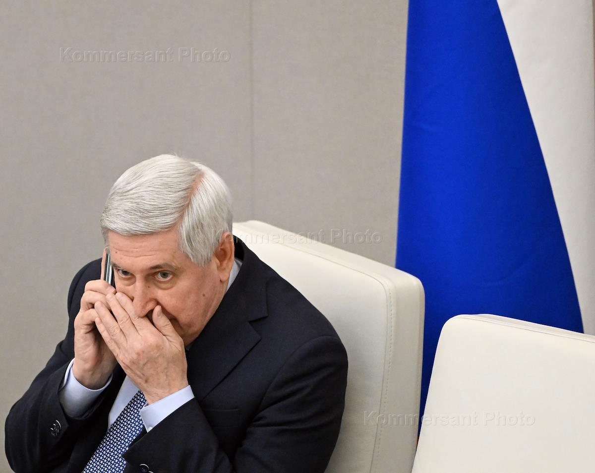 Пленарное заседание Государственной думы (ГД) России. Первый заместитель председателя ГД России по экологии, природным ресурсам и охране окружающей среды Вячеслав Фетисов во время заседания.