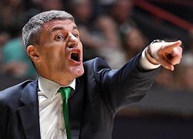 Единая лига ВТБ по баскетболу. Финал. Матч между командами УНИКС (Казань) - "Локомотив-Кубань" (Краснодар) на стадионе "Баскет-холл"(Казань). Главный тренер команды УНИКС Велимир Перасович во время матча.
