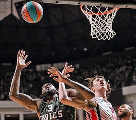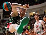 Единая лига ВТБ по баскетболу. Финал. Матч между командами УНИКС (Казань) - "Локомотив-Кубань" (Краснодар) на стадионе "Баскет-холл"(Казань). Игрок команды УНИКС Вячеслав Зайцев (слева) во время матча.
