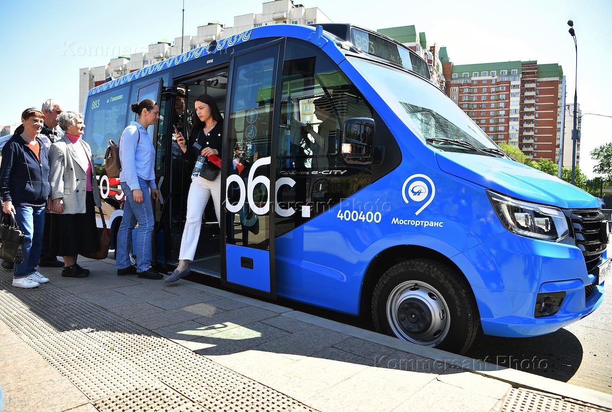 Церемония запуска в тестовую эксплуатацию электробуса малого класса "ГАЗель e-City" ГУП "Мосгортранс" на западе столицы по маршруту 883 метро "Озёрная" – метро "Говорово". Жанровая фотография.