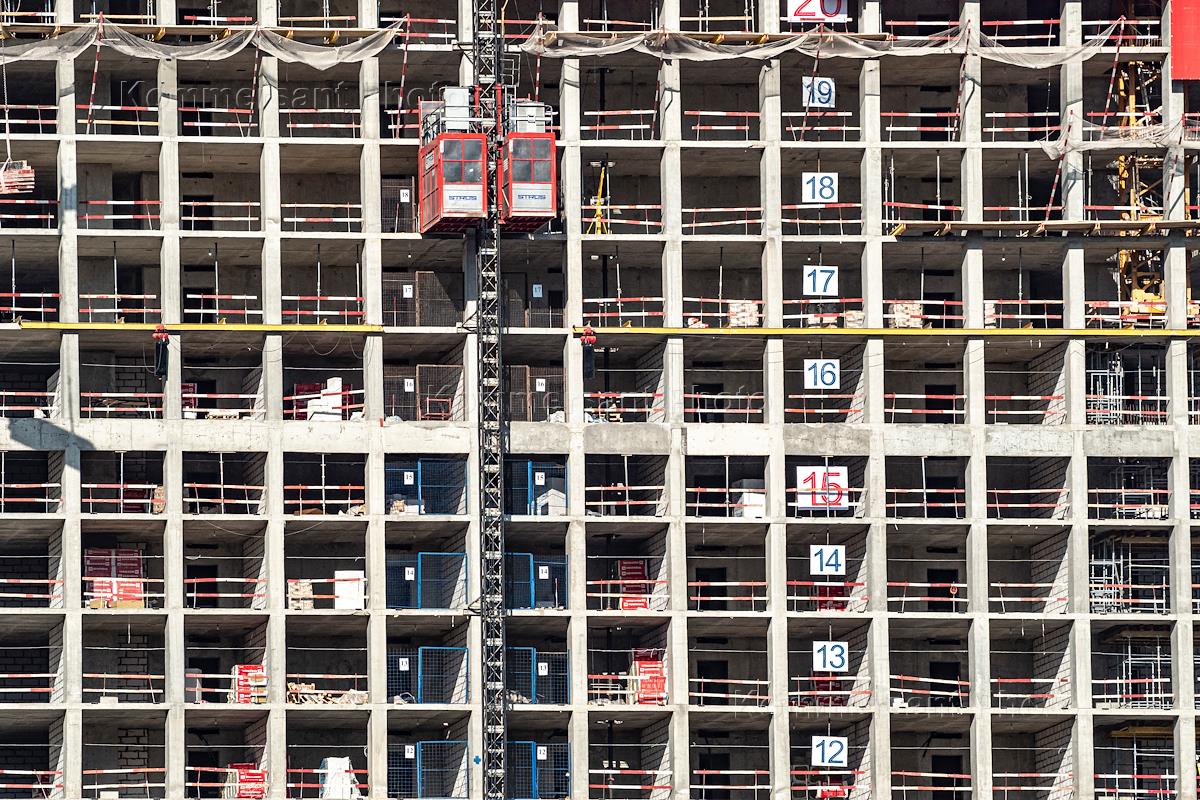 Genre photography. Construction of a high-rise multi-storey residential complex.