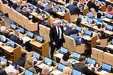 Пленарное заседание Государственной думы (ГД) России. Первый заместитель председателя комитета ГД России по строительству и жилищно-коммунальному хозяйству Павел Качкаев (в центре) во время заседания.
