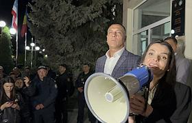 Выборы главы Гагаузской автономии Молдавии. Избранная глава Гагаузской автономии Молдавии от оппозиционной молдавской партии "Шор" Евгения Гуцул (справа) на пикете в защиту местного избиркома. В Гагаузии 14 мая прошел второй тур выборов главы региона. В местном ЦИК объявили о победе Гуцул, которая набрала 52,34% голосов. Спустя два дня в гагаузский избирком пришли с обысками сотрудники Национального антикоррупционного центра Молдавии.