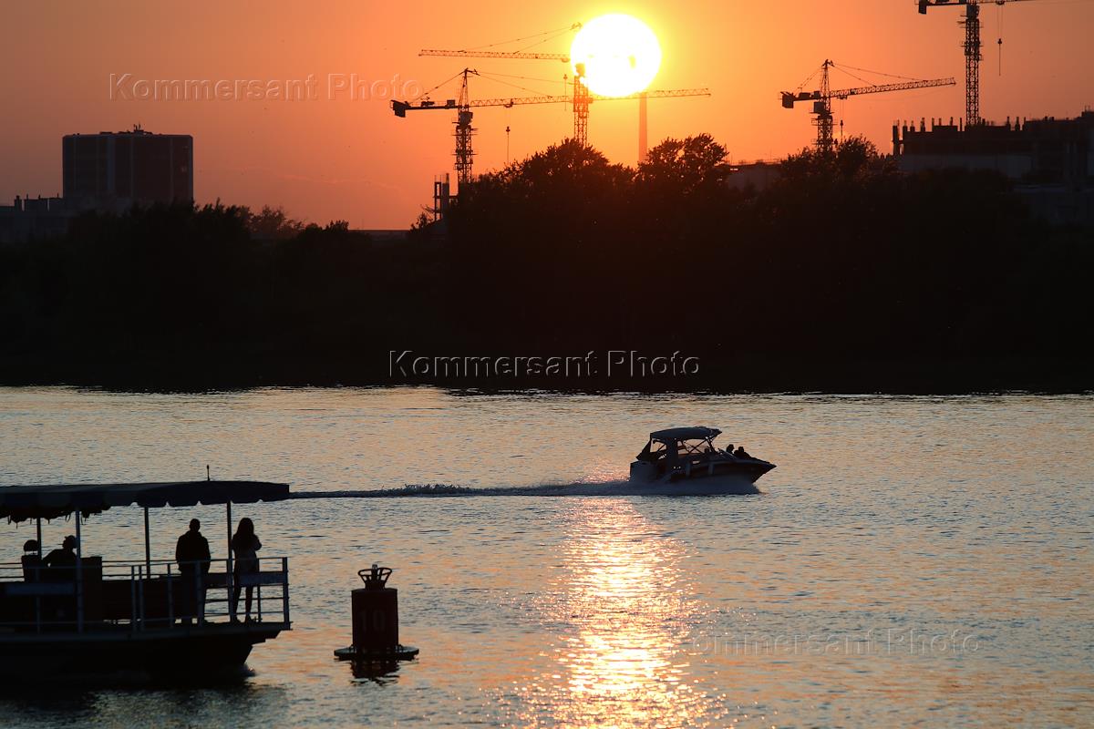 Views of Kazan. Genre photography. Vessels at the berth of the Kazan river port.