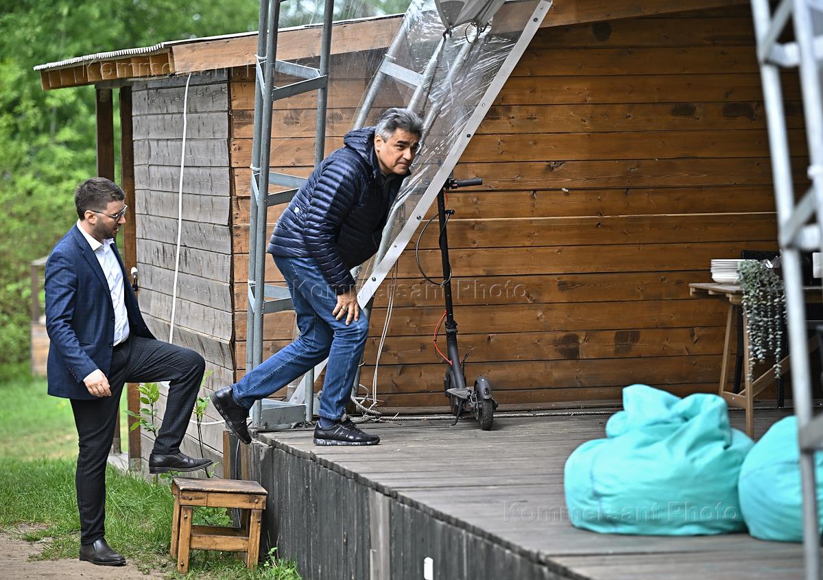 Конференция партии "Новые люди" в формате пикника, посвященная представлению кандидата от партии на выборах в мэры Москвы на предстоящих выборах, на пляже в Серебряном бору. Заместитель председателя Государственной думы (ГД) России Владислав Даванков (слева) и член комитета ГД России по промышленности и торговле Владимир Плякин (справа) на конференции.