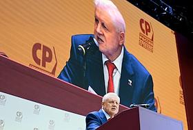 XII съезд партии "Справедливая Россия - Патриоты - За Правду" в доме отдыха "Снегири". Председатель партии "Справедливая Россия – За Правду", руководитель фракции "Справедливая Россия" в Государственной думе России Сергей Миронов во время съезда.