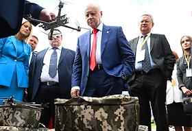 XII съезд партии "Справедливая Россия - Патриоты - За Правду" в доме отдыха "Снегири". Слева направо: актер Александр Домогаров, сербский доброволец, капитан армии ДНР Деян Берич и актер Сергей Никоненко во время съезда.