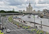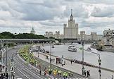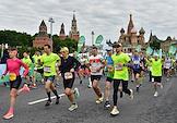 Благотворительный забег "Зеленый марафон 2023", организованная Сбер, Благотворительным фондом СберБанка "Вклад в будущее" и платформой СберВместе. Жанровая фотография. Участники марафона на Москворецкой набережной во время забега.