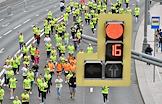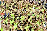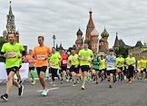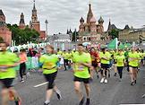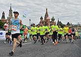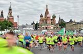 Благотворительный забег "Зеленый марафон Сбера". Участники во время старта на Васильевском спуске.