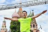 Благотворительный забег "Зеленый марафон Сбера". Вице-президент Федерации спортивной гимнастики России Алексей Немов во время тренировки перед стартом на Васильевском спуске.