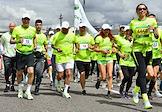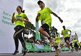Благотворительный забег "Зеленый марафон Сбера". Участники во время забега.