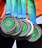 Благотворительный забег "Зеленый марафон Сбера". Жанровая фотография. Медали участников забега.