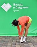 Благотворительный забег "Зеленый марафон Сбера". Участница во время тренировки перед стартом на Васильевском спуске.