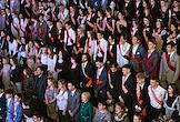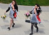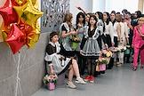Праздник для выпускников "Последний звонок" в Государственном бюджетном общеобразовательном учреждении города Москвы "Школа № 2070 имени Героя Советского Союза Г.А. Вартаняна". Жанровая фотография. Выпускники перед праздником.