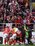Российская Премьер-Лига (РПЛ). МИР - Чемпионат России по футболу 2022/2023. 28-й тур. Матч между командами "Спартак" (Москва) - ЦСКА (Москва) на стадионе "Открытие банк Арена". Болельщики команды "Спартак" на трибуне во время матча.