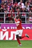 Российская Премьер-Лига (РПЛ). МИР - Чемпионат России по футболу 2022/2023. 28-й тур. Матч между командами "Спартак" (Москва) - ЦСКА (Москва) на стадионе "Открытие банк Арена". Игрок команды "Спартак" Квинси Промес во время матча.