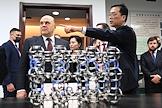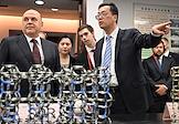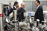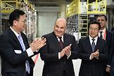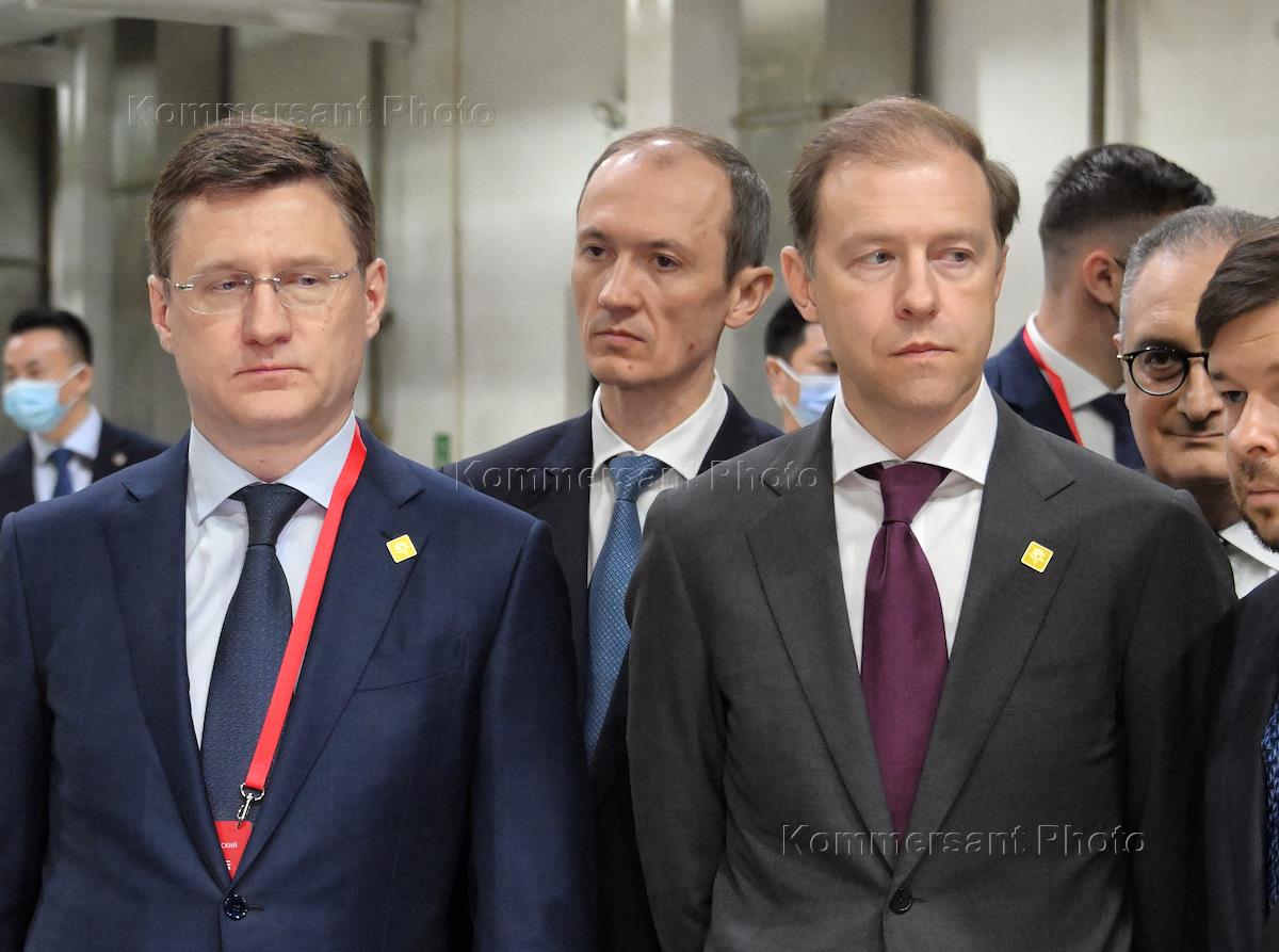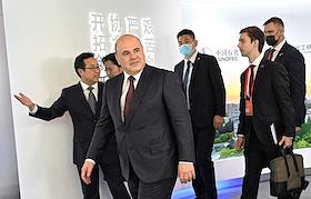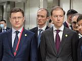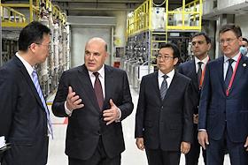 Рабочая поездка председателя правительства России Михаила Мишустина в Китай. Председатель правительства России Михаил Мишустин (в центре) и его заместитель Александр Новак (справа) во время посещения Шанхайского научно-исследовательского института нефтехимии Китайского национальной нефтехимической корпорации Sinopec.