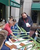 Рабочая поездка председателя правительства России Михаила Мишустина в Китай. Жанровая фотография. Сотрудник полиции в маске на лице разговаривает на улице с прохожими.
