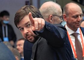 Рабочая поездка председателя правительства России Михаила Мишустина в Китай. Российско-Китайский бизнес-форум в конгресс-центре The Grand Walls. Первый заместитель министра энергетики России Павел Сорокин (слева) перед началом заседания форума.