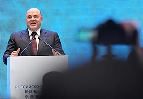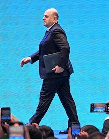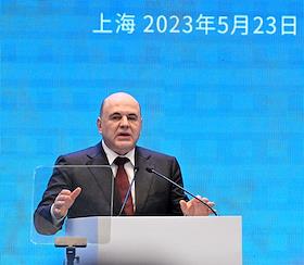 Рабочая поездка председателя правительства России Михаила Мишустина в Китай. Российско-Китайский бизнес-форум в конгресс-центре The Grand Walls. Председатель правительства России Михаил Мишустин на форуме.