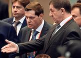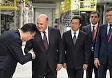 Рабочая поездка председателя правительства России Михаила Мишустина в Китай. Слева направо: заместитель председателя правительства России Александр Новак, заместитель председателя правительства России - глава аппарата правительства России Дмитрий Григоренко и заместитель председателя правительства России - министр промышленности и торговли России Денис Мантуров во время посещения Шанхайского научно-исследовательского института нефтехимии Китайского национальной нефтехимической корпорации Sinopec.