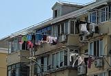 Рабочая поездка председателя правительства России Михаила Мишустина в Китай. Жанровая фотография. Виды Шанхая. Сушка белья на балконах жилого дома.
