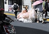 Рабочая поездка председателя правительства России Михаила Мишустина в Китай. Жанровая фотография. Виды Шанхая. Девушка в свадебном платье едет на фотосессию на повозке на улице города.