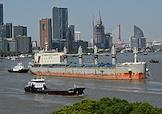 Рабочая поездка председателя правительства России Михаила Мишустина в Китай. Жанровая фотография. Виды Шанхая. Торговые судна на реке Хуанпу.