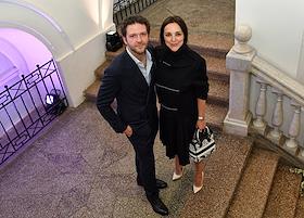 Церемония открытия выставки Vis-a-vis ("Лицом к лицу"), посвященная 8-летию благотворительного фонда "Друзья" в Московском музее современного искусства. Предприниматель Ян Яновский (слева) и эксперт моды Эвелина Хромченко (справа) на церемонии.