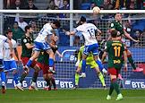Российская Премьер-Лига (РПЛ). МИР - Чемпионат России по футболу 2022/2023. 29-й тур. Матч между командами "Динамо" (Москва) - "Локомотив" (Москва) на стадионе "ВТБ Арена" - Центральный стадион "Динамо" имени Льва Яшина. Вратарь команды "Динамо" Игорь Лещук (в центре) во время матча.