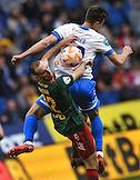 Российская Премьер-Лига (РПЛ). МИР - Чемпионат России по футболу 2022/2023. 29-й тур. Матч между командами "Динамо" (Москва) - "Локомотив" (Москва) на стадионе "ВТБ Арена" - Центральный стадион "Динамо" имени Льва Яшина. грок команды "Динамо" Вячеслав Грулёв (справа) и игрок команды "Локомотив" Марио Митай (слева) во время матча.