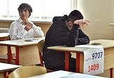 Проведение Единого Государственного Экзамена (ЕГЭ) по русскому языку в Государственном бюджетном общеобразовательном учреждении города Москвы "Школа № 1284" в Уланском переулке. Выпускники в классе перед началом экзамена.