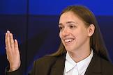 Пресс-конференция, посвященная проведению Фестиваля "Движения Первых" во всех субъектах Российской Федерации в МИА "Россия сегодня". Руководитель Федерального агентства России по делам молодежи Ксения Разуваева во время пресс-конференции.