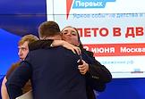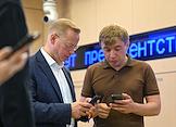 Пресс-конференция, посвященная проведению Фестиваля "Движения Первых" во всех субъектах Российской Федерации в МИА "Россия сегодня". Руководитель Федерального (справа) после окончания пресс-конференции.