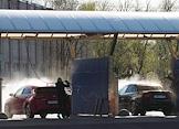 Виды Царского Села. Жанровая фотография. Люди моют свои автомобили на мойке самообслуживания.