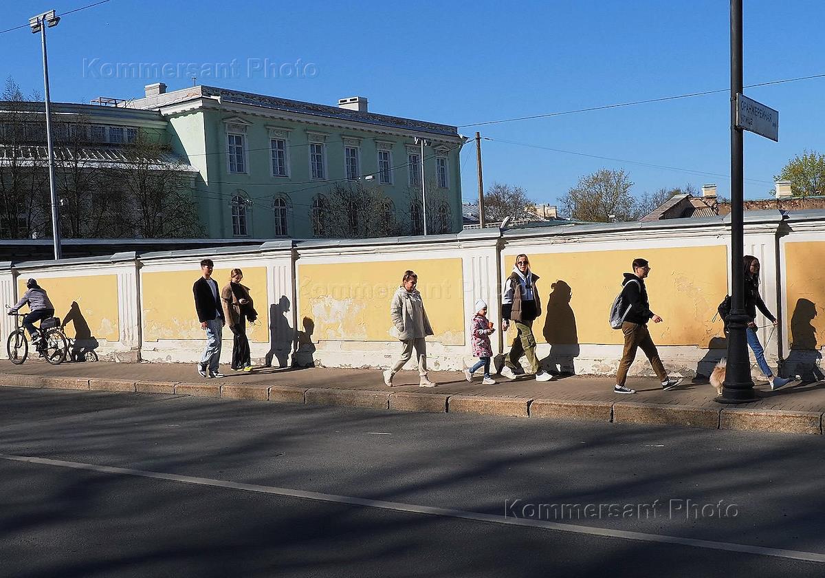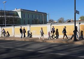 Виды Царского Села. Жанровая фотография. Люди идут во улице города.