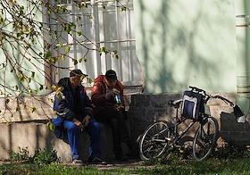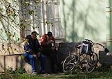 Виды Царского Села. Жанровая фотография. Мужчины пьют пиво на территории Государственного музея-заповедника "Царское Село".