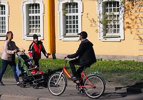 Виды Царского Села. Жанровая фотография. Молодой человек едет по парку на велосипеде.