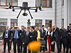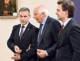 Пресс-конференция Верховного представителя Евросоюза по иностранным делам и политике безопасности Жозепе Борреля, министра министерства обороны Молдавии Анатолия Носатого и вице-премьера и министра иностранных дел и европейской интеграции Республики Молдова Нику Попеску, после передачи партии оборудования для подразделений саперов и службы медицинской помощи армии Молдовы. Справа налево, первый ряд: министр иностранных дел и европейской интеграции Республики Молдова Нику Попеску, министр обороны Республики Молдова Анатолий Носатый и верховный представитель Евросоюза по иностранным делам и политике безопасности Жозеп Боррель после окончания пресс-конференции.