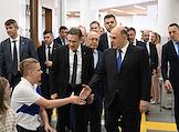 Рабочая поездка председателя правительства России Михаила Мишустина в Саров. Председатель Правительства России Михаил Мишустин (в центре) и ректор МГУ имени М.В. Ломоносова Виктор Садовничий (второй справа) во время осмотра учебных корпусов филиала МГУ имени М.В. Ломоносова.